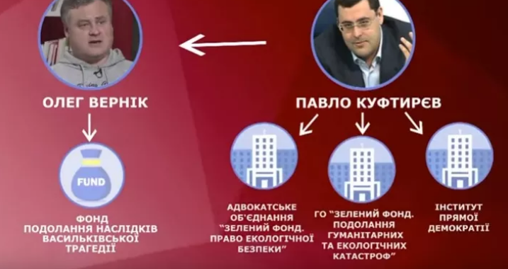 «За Фондом преодоления последствий Васильковской трагедии стоят неизвестные широкой общественности юристы Алексей Француз и Павел Куфтырев. Последний знаком с Верником еще со студенческих времен. Это доказывается их соавторством в научной работе. К тому же Куфтырева уличили в рейдерстве. В частности, руководство фармацевтического завода «Дарница» заявляло, что за атакой на стратегическое предприятие стоял именно он», - говорится в сюжете.