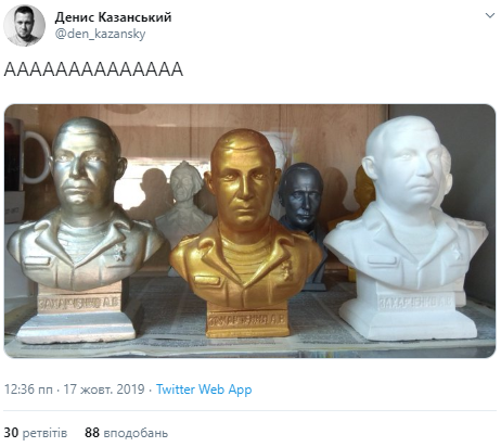 Пользователи соцсетей смеются над бюстом убитого в Донецке главаря так называемой ДНР Александра Захарченка.