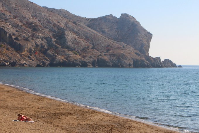 Блогер опубликовала фотографии из курортного города на южном берегу Крыма, Судака. На снимках можно увидеть, что на пляжах еще отдыхают некоторые люди, однако их очень мало, по одному человек на несколько десятком метров прибрежной зоны.