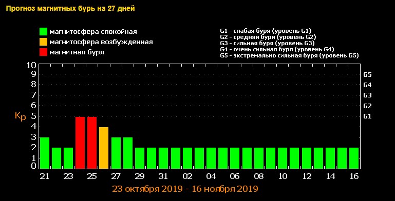 Лаборатория рентгеновской астрономии Солнца пересмотрела свой прогноз по поводу опасных дат в октябре, когда магнитосфера будет возбужденной. Объявлено, что вероятность магнитной бури будет высокой 24 и 25 октября.