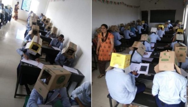 В Индии студенты сдавали экзамен с коробками на головах (фото)