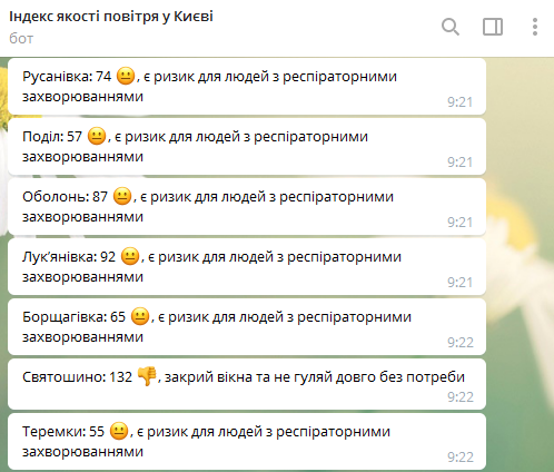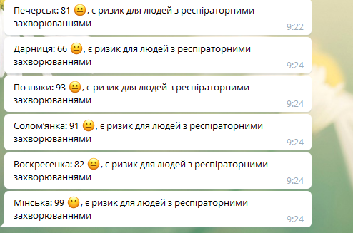 Отметим, что данные по ВДНХ, Дарнице, Минскому массиву и микрорайону Теремки появились в телеграмм-боте "Индекс качества воздуха в Киеве" лишь на днях.