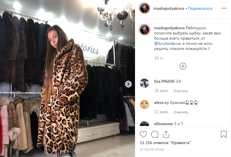 Новый пост Поляковой-младшей посвящен теме осенне-зимней моды. На своей страничке в сети instagram Маша опубликовала фото, на которых позирует в шубах и пальто.