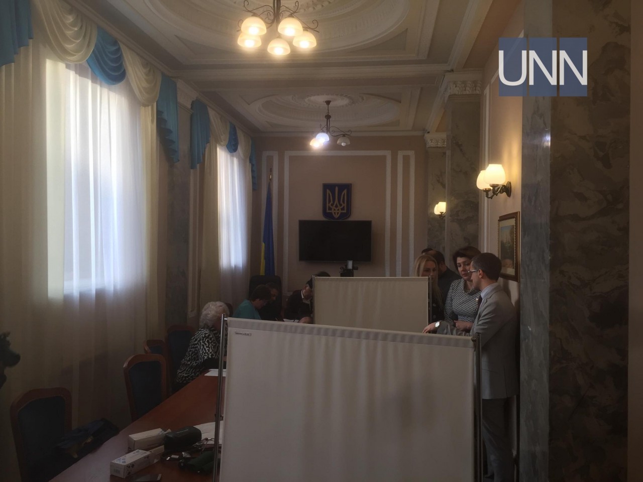 В медпункте находятся медицинские сотрудники, которые сначала осматривают нардепов, а потом делают прививки.