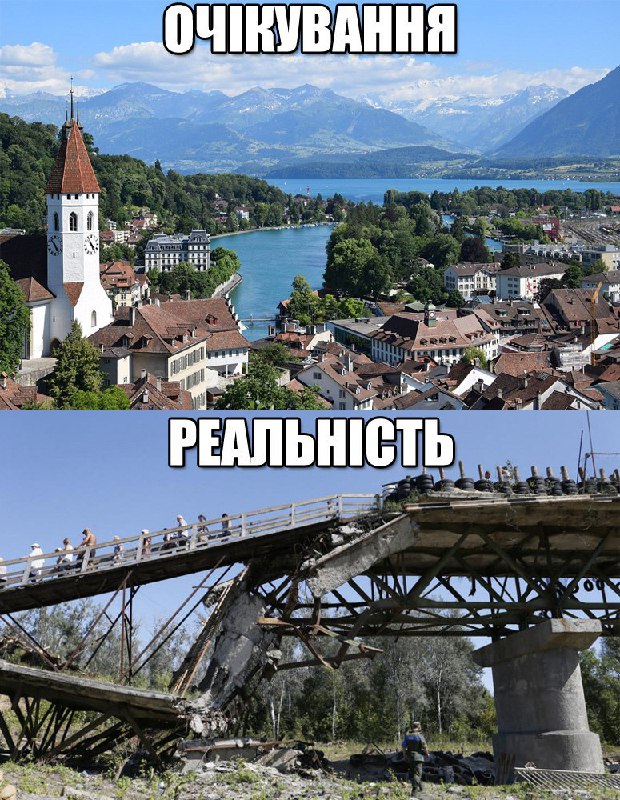 В связи с этим в сети опубликовали смешную, но реалистичную фотожабу. На картинке также сравнили Станицу Луганскую и Швейцарию.