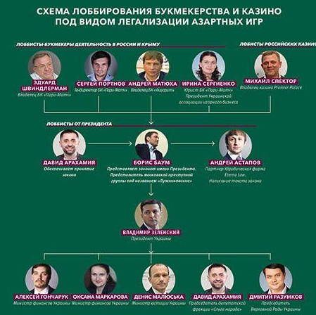Предполагается, что контроль над игорным бизнесом россияне могут получить через букмекерские компании, в интересах которых написан проект закона. В первую очередь, речь идет о букмекерских компаниях «Пари-Матч» и «Фаворит». Обе компании в настоящее время находятся в Украине под запретом и, в то же время, ведут свой бизнес в России и на украинских оккупированных территориях.