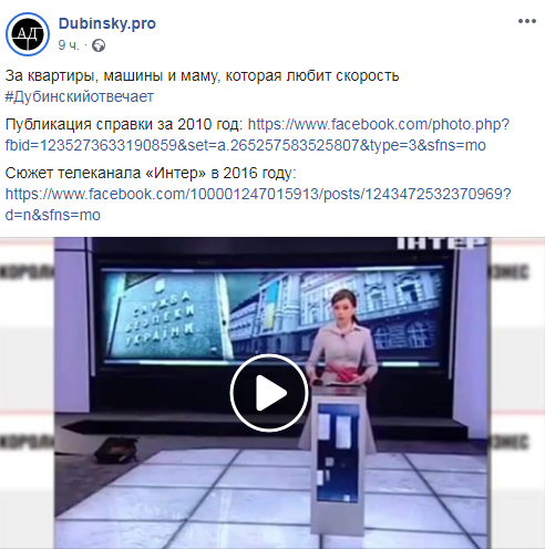 Расследование о имуществе Дубинского и его семьи