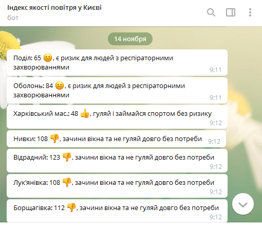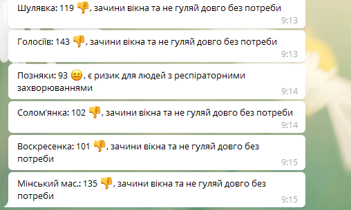 По данным телеграмм-бота "Индекс качества воздуха в Киеве", безопасно сегодня только на Харьковском массиве, здесь можно смело гулять и заниматься спортом.