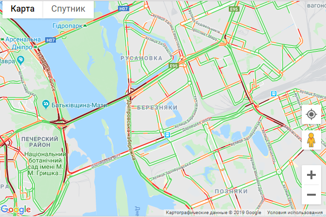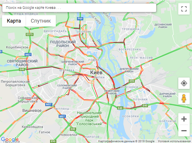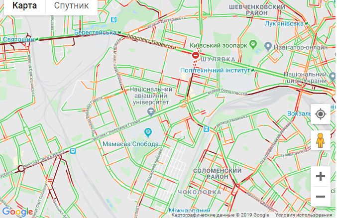 По данным сервиса Google Maps, пробки образовались возле станций метро Святошин, Берестейская, Сырец, Университет, Почтовая площадь, Демеевская, Осокорки.