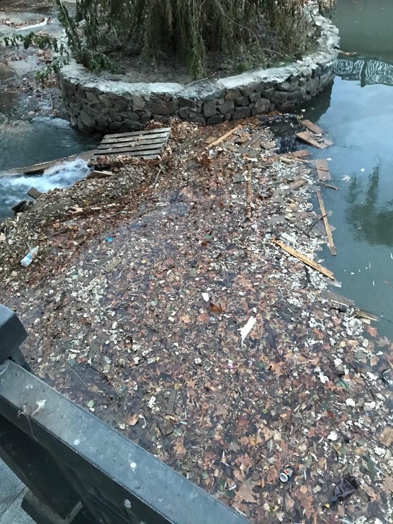 На фото видно, что русло реки захламлено досками и прочим мусором, собравшимся на небольшом перекате. Результатов чистки, которая тут якобы проводилась, совершенно не наблюдается.