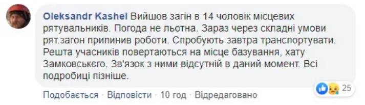 "Вышел отряд в 14 человек местных спасателей. Погода не летная. Сейчас из-за сложных условий спасательный отряд прекратил работы. Попробуют завтра (29 ноября) транспортировать. Остальные участники возвращаются на место базирования, дом Замковского. Связь с ними отсутствует в данный момент. Все подробности позже", – прокомментировал поисковую операцию альпинист Александр Кашель.