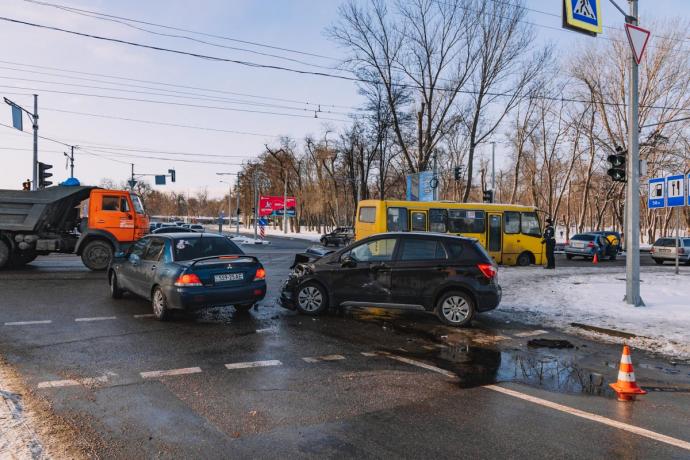 Сегодня утром, 4 декабря, в Днепре произошла авария на улице Генерала Пушкина возле ТРЦ «Дафи». Около 09:00 там столкнулись две легковушки — Suzuki и Chevrolet, передает FaceNews.ua.