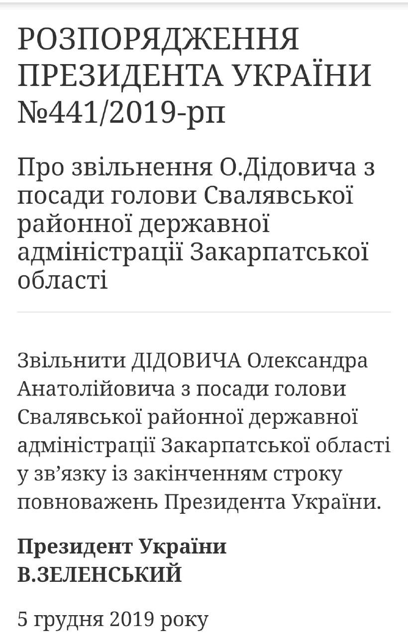 В них говорится об увольнении чиновника "в связи с истечением полномочий президента Украины".