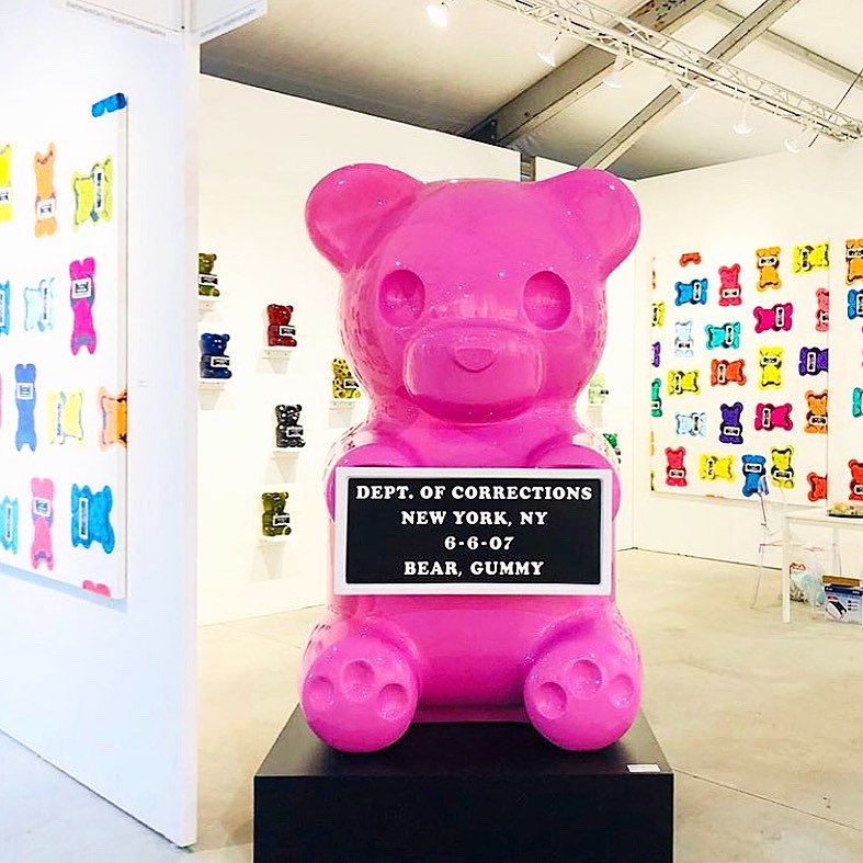 Таким образом, коллекционер истратил $ 45 000 на скульптуры больших желейных мишек, держащих плакаты, которые обычно используют при съемке задержанных в полицейских участках.