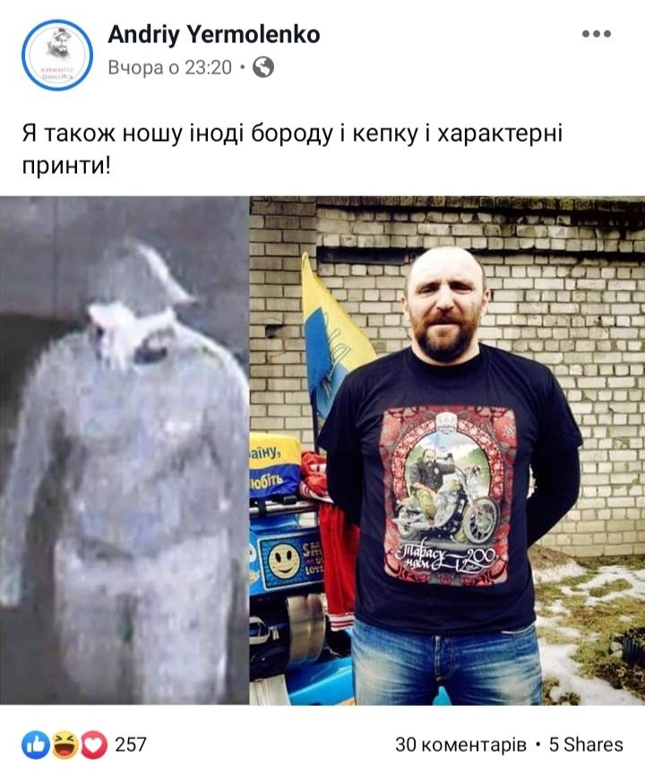 В частности, обсуждают ветерана АТО и музыканта Андрея Антоненко. Точнее говорится о его якобы сходстве с человеком, которого зафиксировала камера видеонаблюдения.