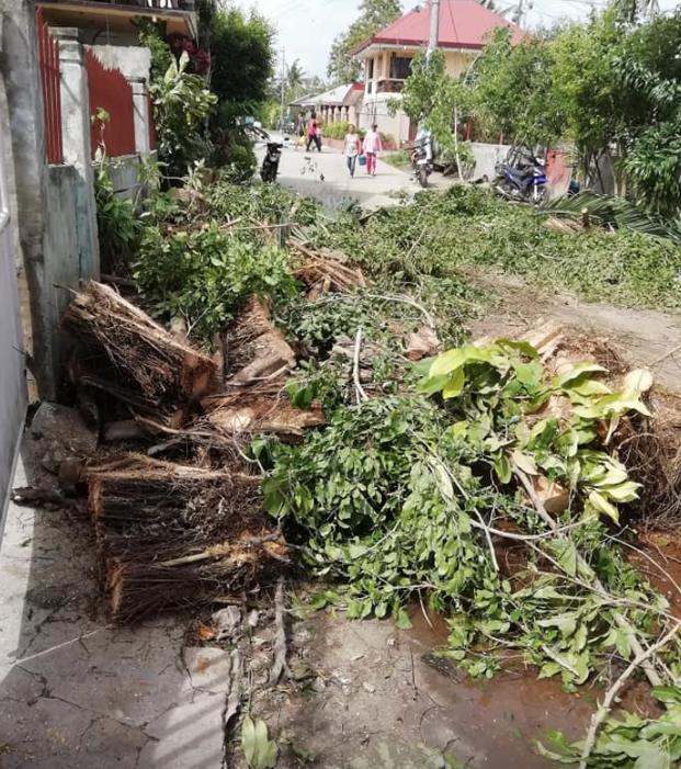 Тайфун Фанфон, который сопровождался порывами ветра, достигающими 195 км/ч, нанес значительный материальный ущерб, разрушив крыши домов и опрокинув столбы.