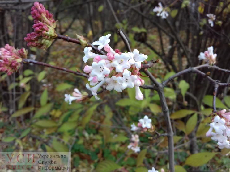 Отметим, что на днях в Одесском ботаническом саду расцвела калина.