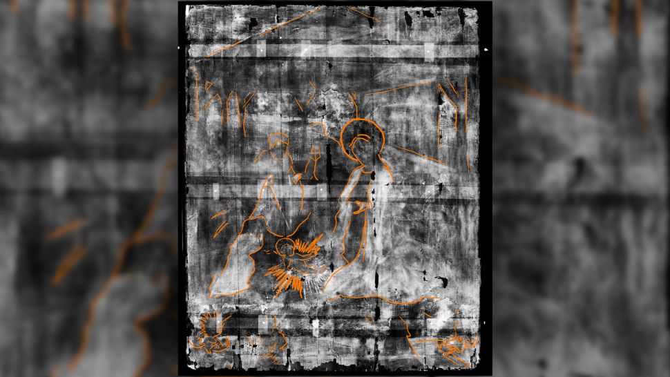 Находка была сделана сотрудниками британского Нортумбрийского университета в Ньюкасле во время подготовки к реставрации. Эксперты сделали рентгеновский снимок и на 400-летней картине проступили контуры еще одной. Реставраторы увидели ребенка с ореолом над головой, стоящих на коленях ангелов и ясли на заднем плане.