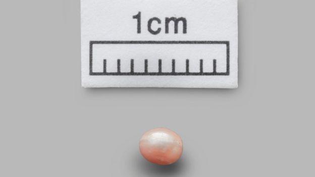 Находка бледно-розового цвета имеет диаметр меньше трети сантиметра.