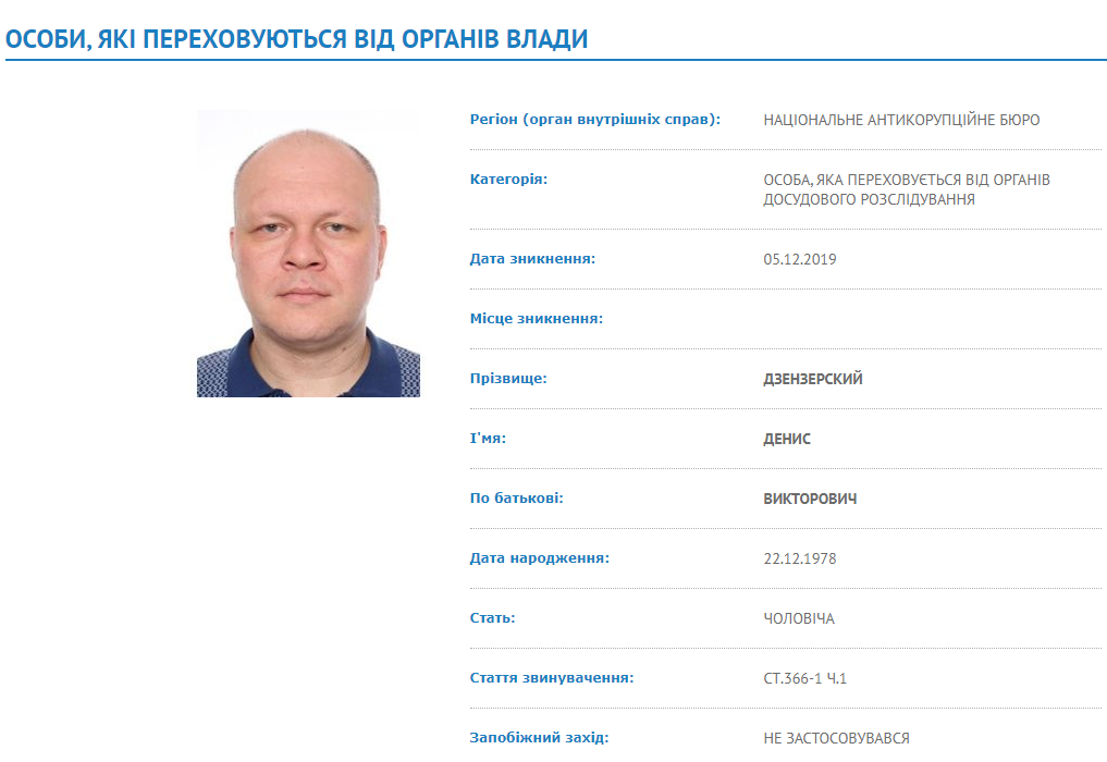 НАБУ объявило в розыск экс-нардепа Дзензерского