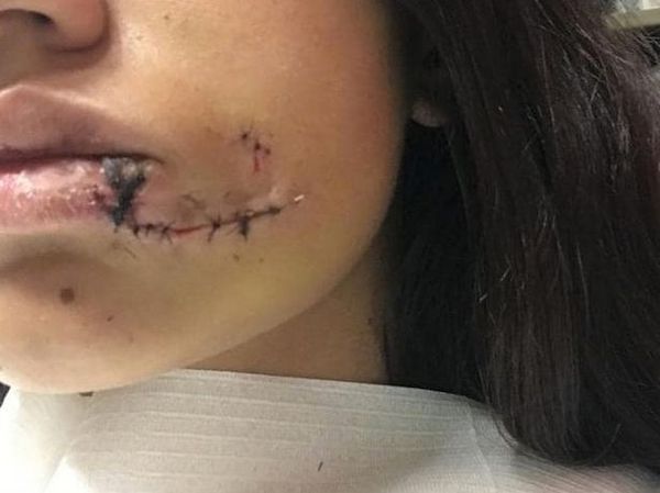 Девушке понадобилась двухчасовая операция, в ходе которой ей наложили 40 швов, в том числе и внутри рта - на десны. Снимки, которые Сансон выложила в соцсети Twitter, стали вирусными.