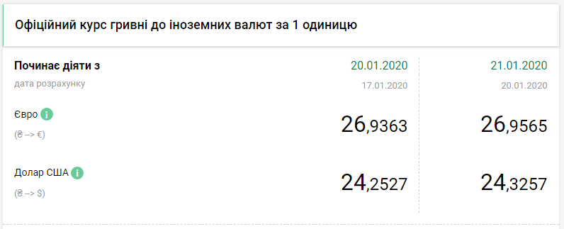 Об этом свидетельствуют данные на сайте НБУ, опубликованные в понедельник, 20 января.
