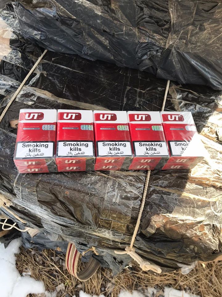 На месте обнаружения группы правонарушителей пограничники нашли 12 пакетов, в которых было около 18 тысяч пачек сигарет. Впоследствии, в ходе осмотра прилегающей к границе территории группой реагирования обнаружено табачный тайник, где находилось еще несколько пакетов с сигаретами различных марок.