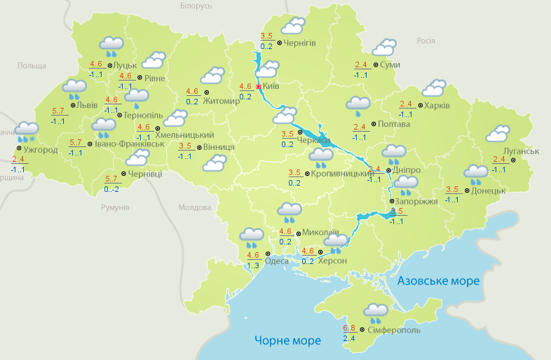 А уже 29 активный циклон обусловит непогоду в большинстве областей Украины – дождь, мокрый снег и сильный ветер.