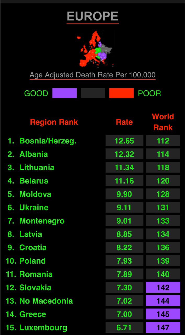В Швеции, Великобритании и Нидерландах погибает менее 3 человек на 100 000 населения.