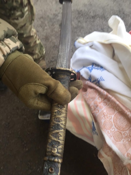 Житель Донбасса ввез на неподконтрольную территорию Украины самурайский меч, передает FaceNews.ua.