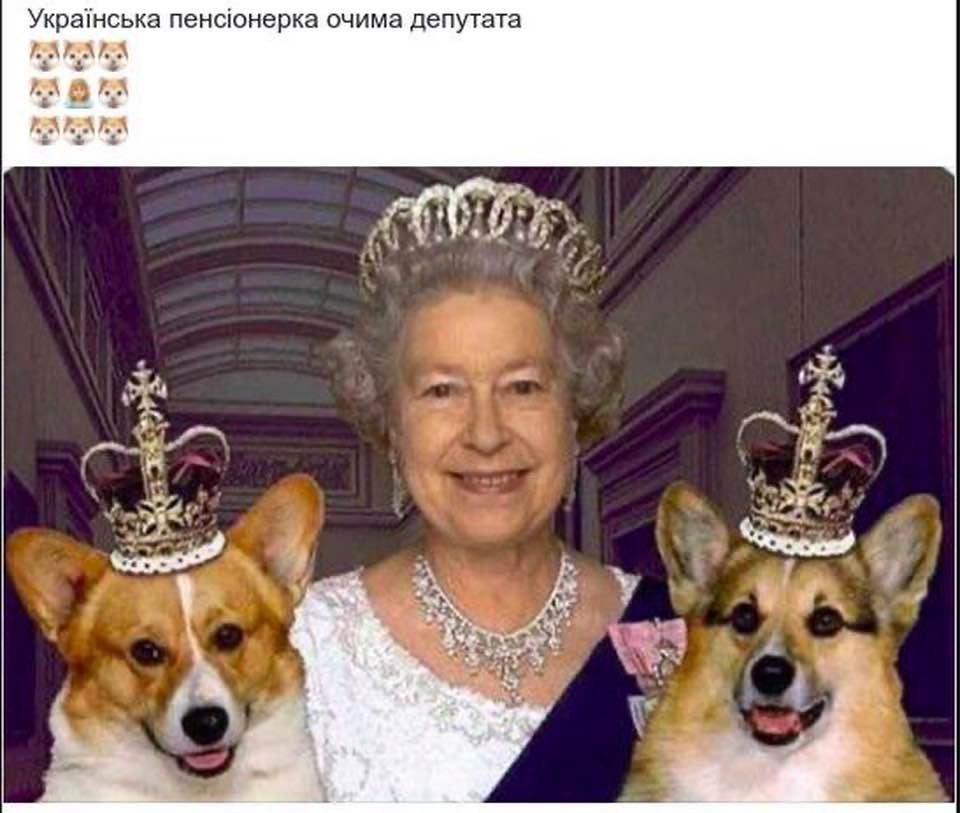 "Украинская пенсионерка глазами украинского депутата", - говорится в подписи к фотожабе.