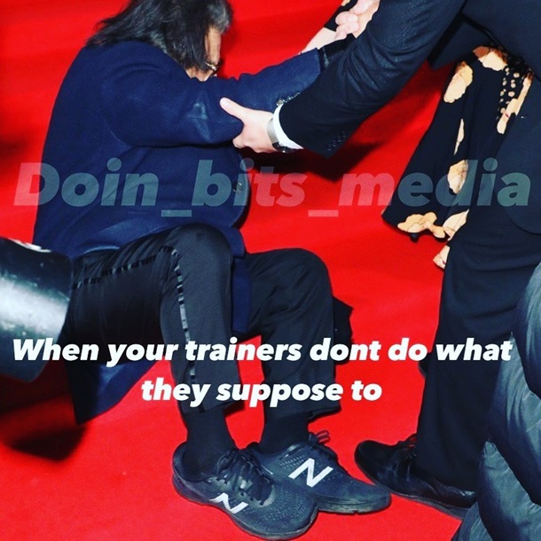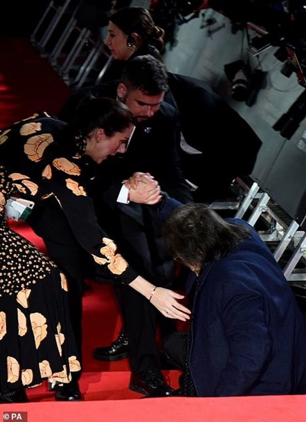 Поднимаясь по лестнице зала Royal Albert Hall на красной дорожке, актер споткнулся и упал. Охранники помогли звезде подняться и дойти до зала.