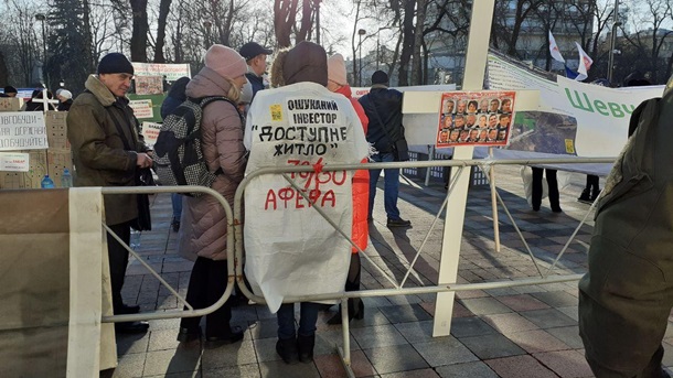 Протестующие представились инвесторами строительства жилых комплексов, которые в столице и в Украине возводит банк Аркада. Под Раду приехали жители Ровно и Черновцов. Они требуют вернуть им вложенные деньги.