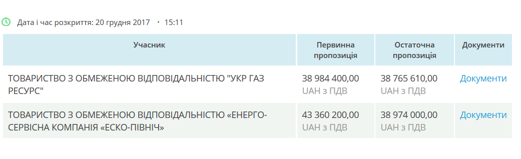 Мощный старт мог бы случиться и на несколько месяцев раньше на торгах того же Департмента, который выбирал поставщика газа на декабрь 2017 года. Тогда «Укр газ ресурс» пришел на торги стоимостью 4 млн грн, выиграл их по цене, но был отклонен заказчиком, потому юная и неопытная фирма не предоставила обеспечение тендерного предложения. И в результате Департамент был вынужден принять более дорогое предложение ООО «Энерго-сервисная компания« Эско-север» с газом по 9900 гривен.