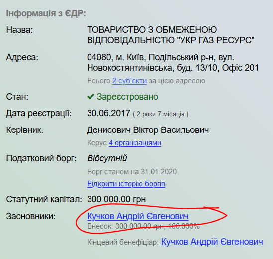 ООО «Укр газ ресурс», принадлежащий зятю известного беглеца Николая Злочевского Андрею Кучкову, ворвался в государственные закупки зимой 2017-2018 годов, в разгар отопительного сезона. Однако компании в январе 2018 удалось получить крупный подряд Департамента гуманитарной политики Днепровской горсовета на поставку газа для отопления учебных заведений Днепра на сумму 38,76 млн грн.