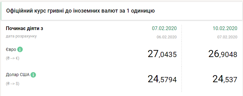 Национальный банк Украины на понедельник, 10 февраля, укрепил курс гривны на четыре копейки по отношению к доллару и на 14 копеек по отношению к евро, передает FaceNews.ua. Об этом свидетельствуют данные на сайте регулятора в пятницу, 7 февраля.