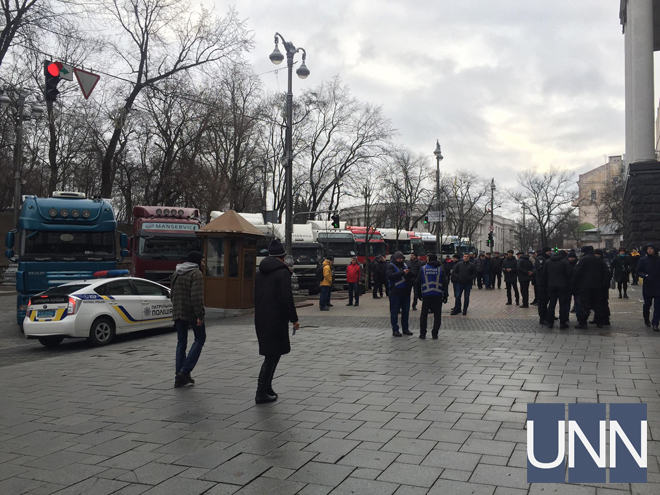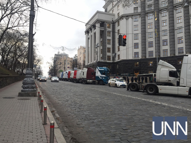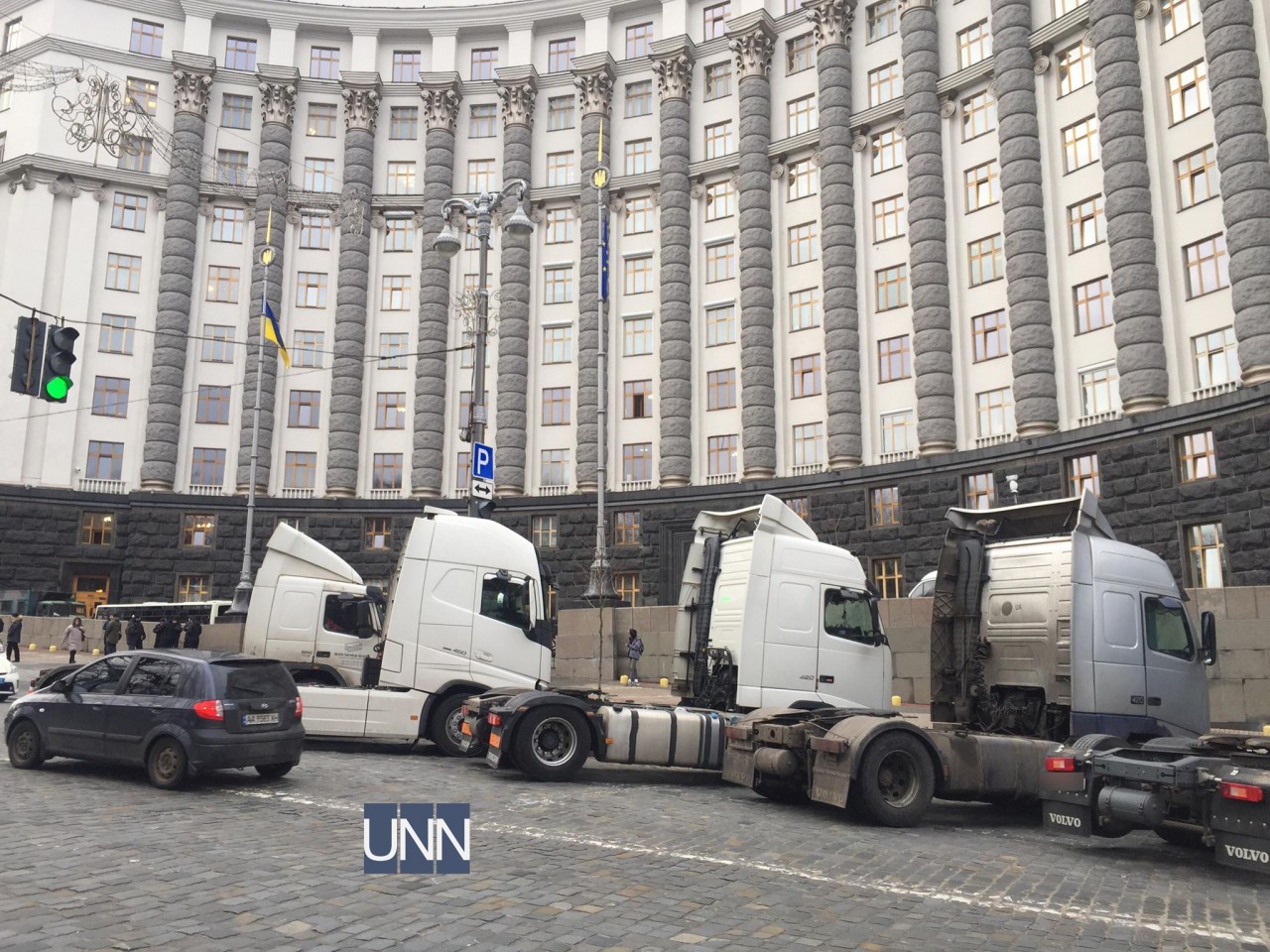 Митинг перевозчиков в Киеве: под здание Кабмина "пригнали" фуры (фото)