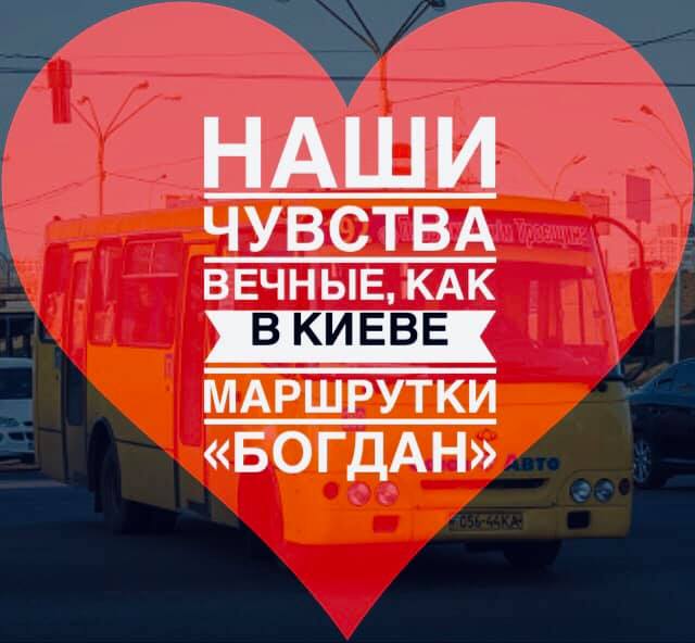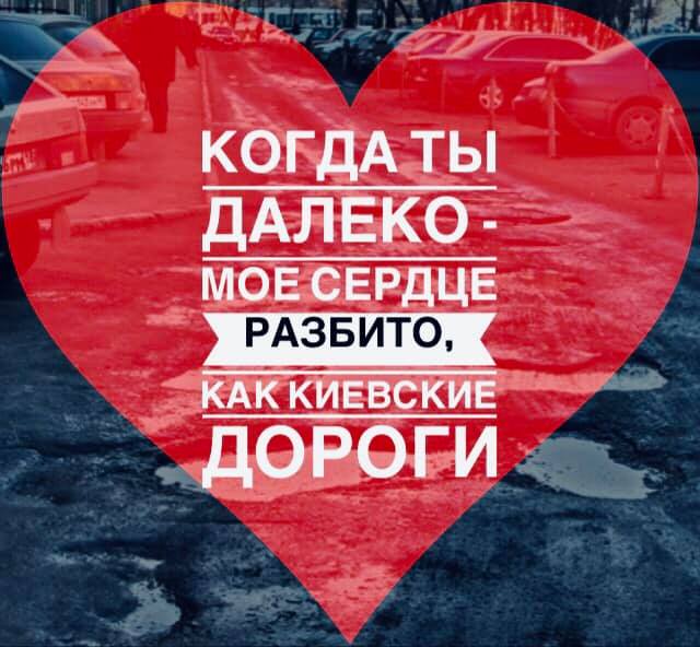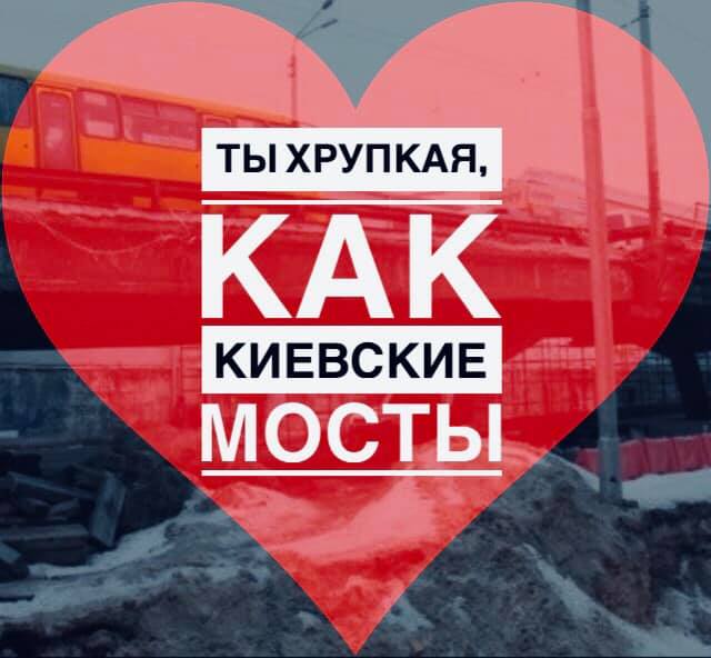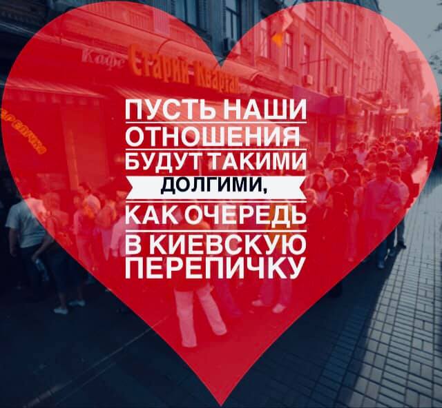 "Ты непростая, как развязка на мосту Патона", "Наши чувства вечные, как в Киеве маршрутки Богдан", "Пусть наши отношения будут такими долгими, как очередь в Киевскую перепичку", "Ты хрупкая, как киевские мосты", "Моя любовь к тебе растет так быстро, как новостройки в Киеве", "Жду тебя так сильно, как жители Троещины ждут метро", "У меня к тебе бурлит фонтан чувств, как теплотрасса на Руставели", "Когда ты далеко - мое сердце разбито, как киевские дороги", - именно такие надписи красуются на валентинках.