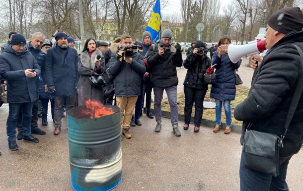 В пикете приняли участие представители общественности и депутаты Житомирского областного совета. Участники акции сожгли свои платежки за транспортировку газа в металлической бочке. Затем активисты зажгли несколько файеров.