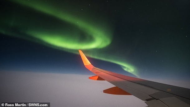 Северное сияние над Исландией удалось сфотографировать с борта самолета свадебному фотографу Россу Мартину, передает FaceNews.ua. Снимки получились очень красивыми.