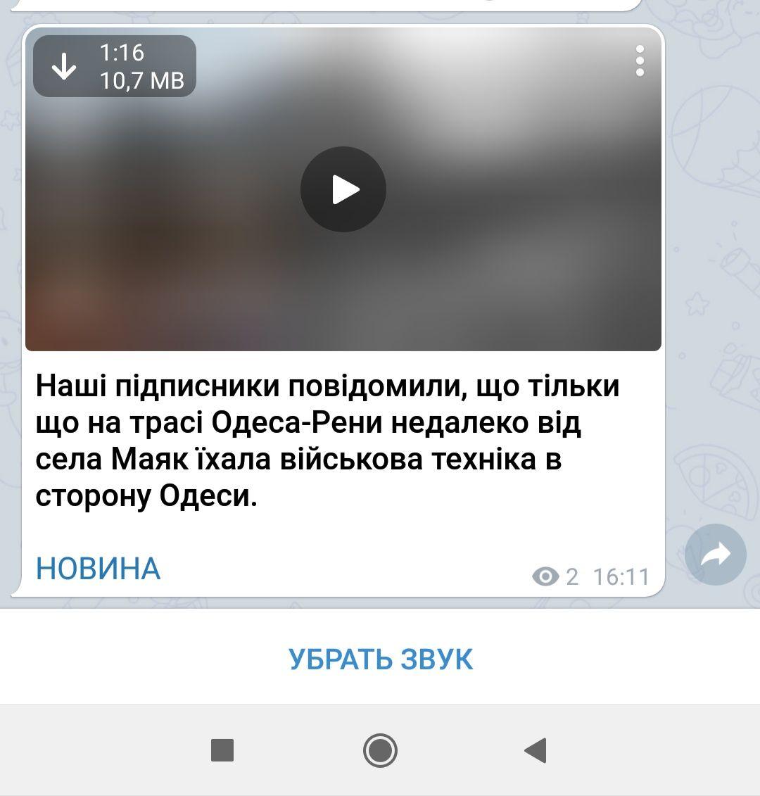 На трассе Одесса-Рени возле села Маяк заметили военную технику, которая двигалась в сторону Одессы.