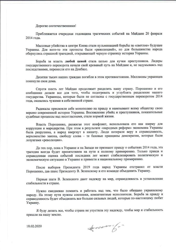 "Первые шаги В. Зеленского дают шанс на мир, справедливость и установление стабильности в стране", – пишет Виктор Янукович.