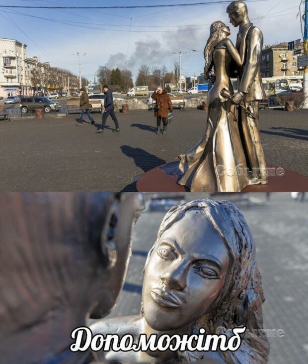 В сети высмеяли нелепый памятник влюбленной пары в Каменском (фото)