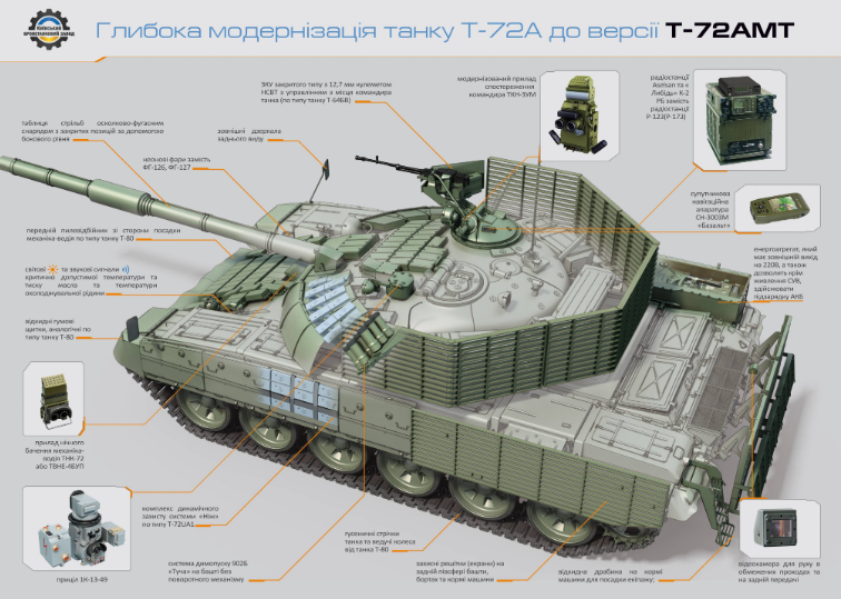 Как говорится, модернизированная модель Т-72 АМТ получила возможность ведения огня управляемым вооружением.