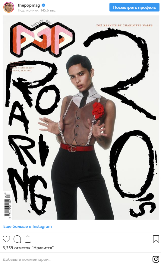 Американская актриса Зои Кравиц, известная по роли в фильме Люди Икс: Первый класс, обнажилась для модного журнала. Пикантные снимки звезды появились на официальной странице глянца в Instagram.