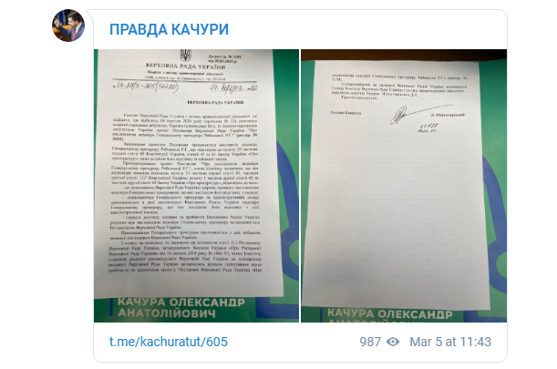 Правоохранительный комитет Верховной Рады поддержал отставку генпрокурора Руслана Рябошапки. Об этом сообщил в Телеграм нардеп от Слуги народа Александр Качура, передает FaceNews.ua.