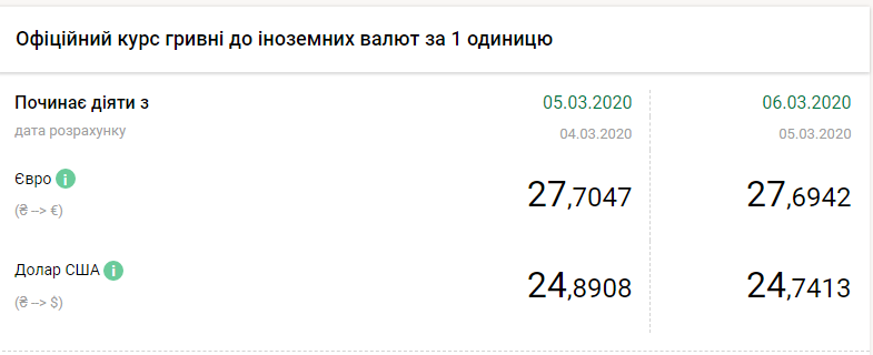 Официальный курс гривны к доллару на 6 марта установлен на таком уровне: 24,7413 гривен за 1 доллар (-0,1495 грн). При этом курс доллара на 5 марта составляет 24,8908 гривен за 1 доллар.