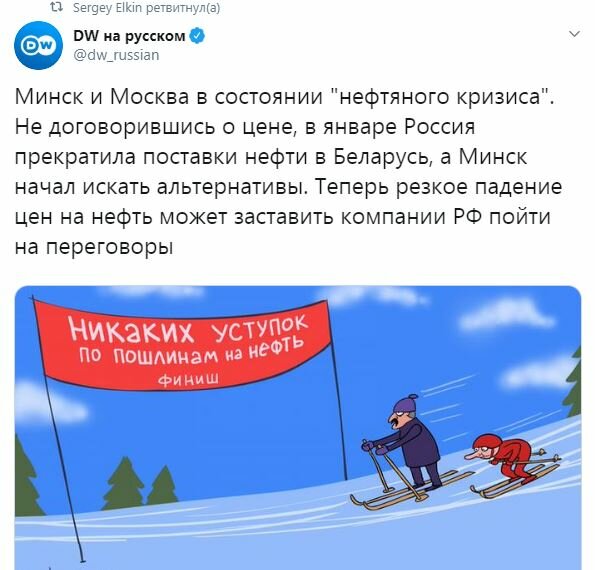 Он решил изобразить президентов РФ и Беларуси в виде спортсменов, которые соревнуются на лыжах.