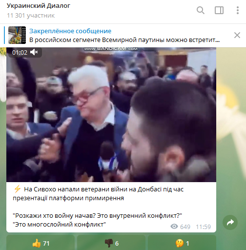 Как сообщается в Телеграм-канале "Украинский диалог", во время презентации произошел неприятный инцидент. Присутствующие националисты начали предъявлять претензии к Сивохо, фактически заблокировав проведение презентаци. Самого Сивохо вывели из зала.