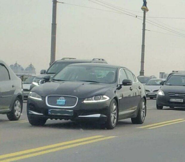 На снимке видно, что оригинальный водитель передвигается по городу на автомобиле Jaguar XF.